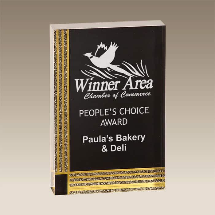 The Black Diamond premier award is constructed of 1″ thick acrylic and is self-standing.